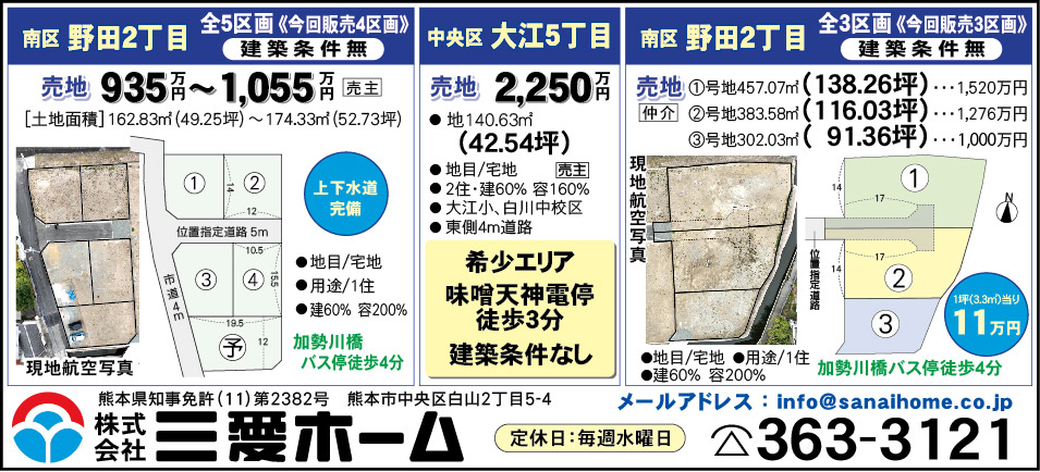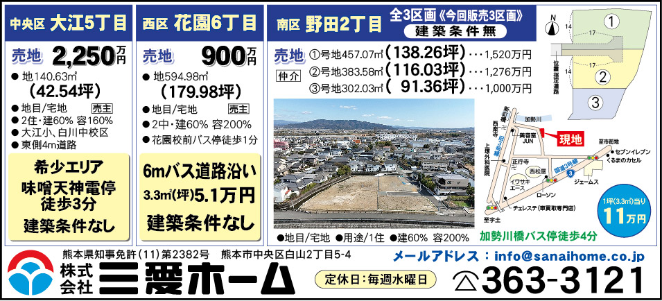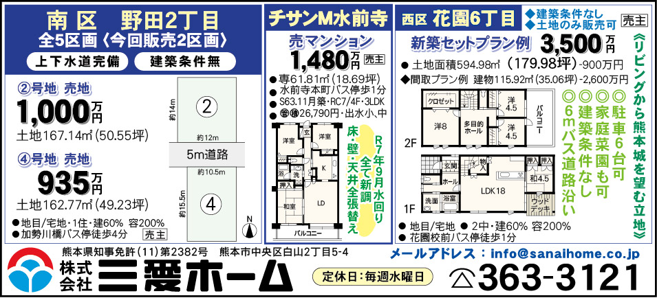 私たち「三愛ホーム」はこれまで多くの不動産売買に携わって参りました。その経験と実績を活かし、ここ熊本の街づくりを担う不動産会社として、お客様の人生における大切なお取引をしっかりとサポート致します。
