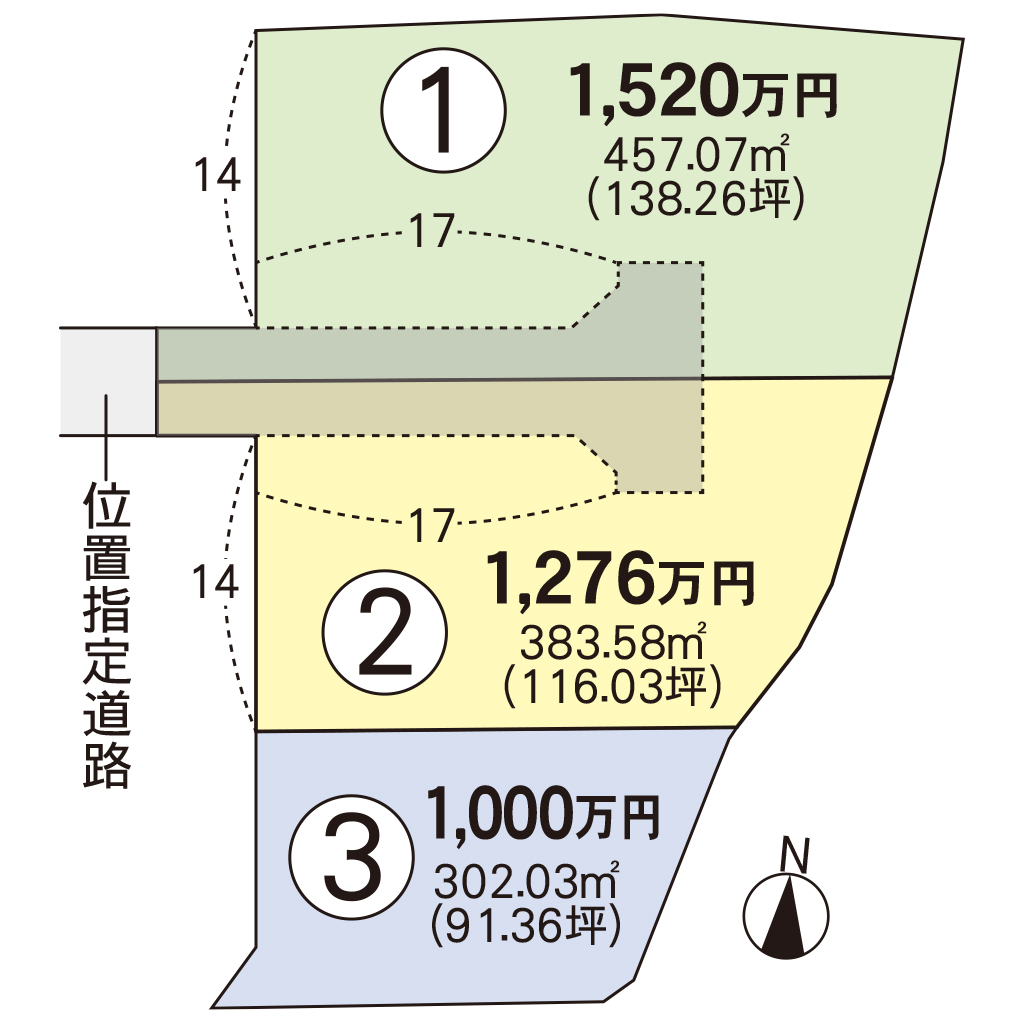 ・2号地:383.58㎡(116.03坪)/1,276万円 @11万円/坪(3.3㎡)